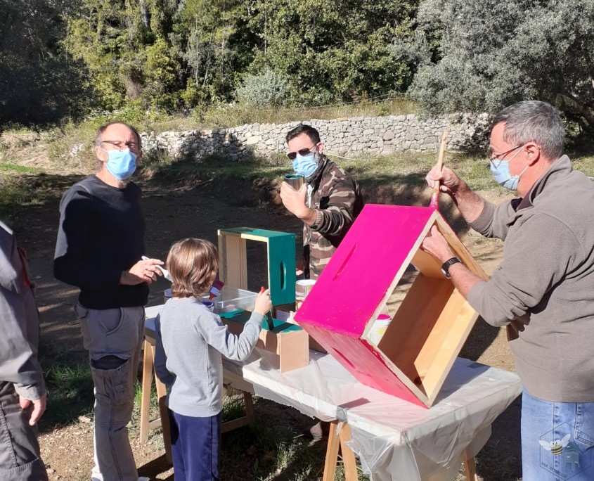 Par cette belle journée ensoleillée et dans une excellente ambiance, tout le monde a eu à cœur de gratter, poncer, peindre, etc… l’ensemble des matériels du rucher-école avant le remisage hivernal.